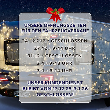 Kundendienst vom 17.12.-03.01. geschlossen. Verkauf geöffnet siehe geänderte Öffnungszeiten!