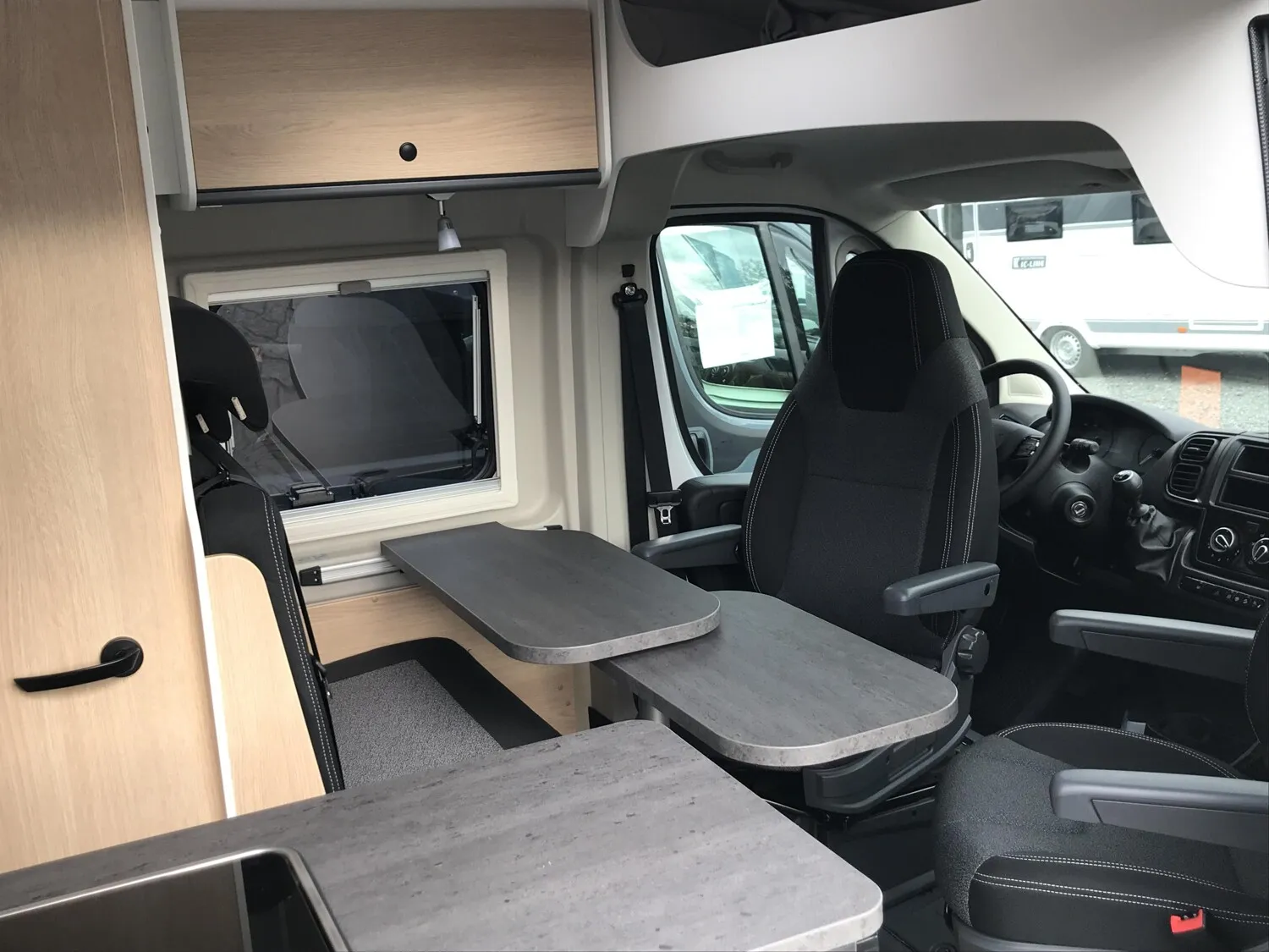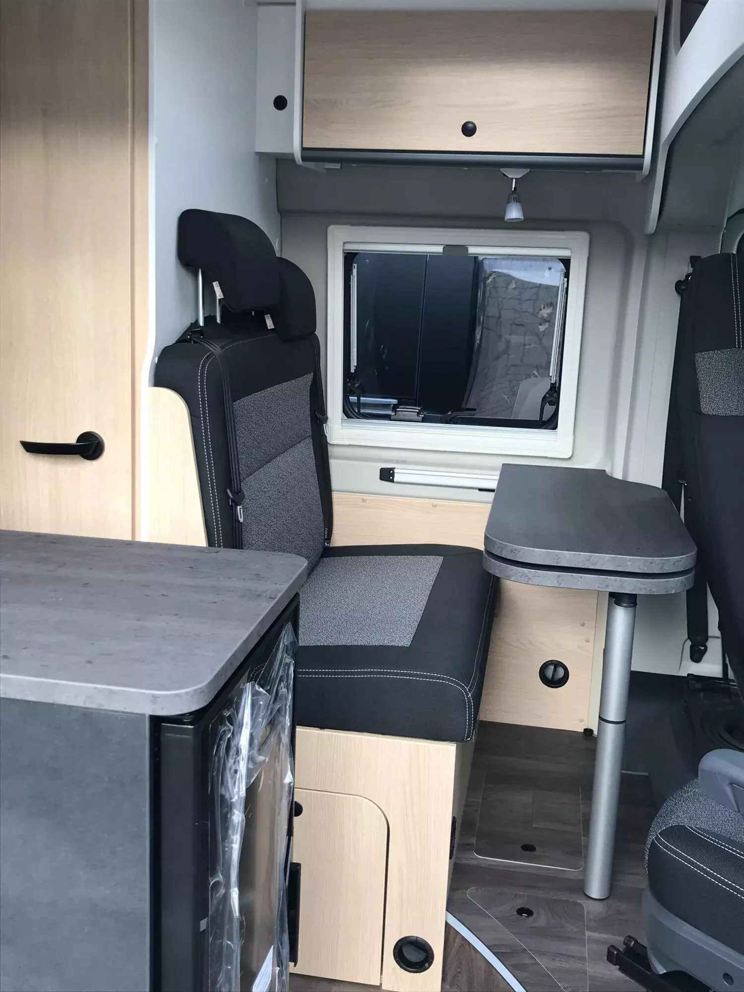 - Basic Paket (Panoramadachhaube 70 x 50 cm, Duschausstattung, Fenster im Bad, Kleiderstange in der Nasszelle, Breite Einstiegsstufe, Drehplatte für Tischerweiterung an der Sitzgruppe)