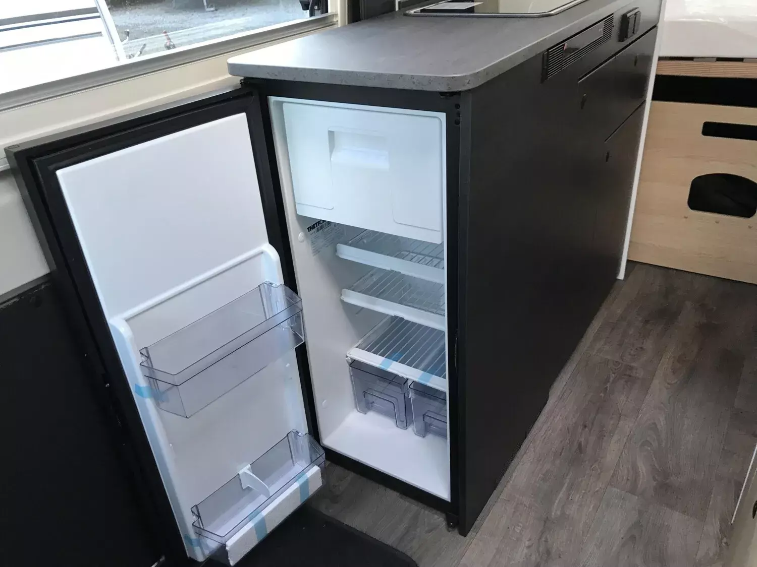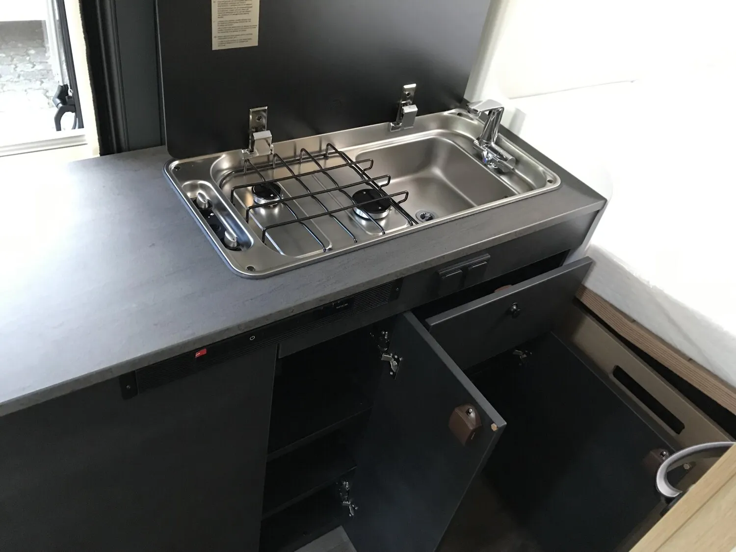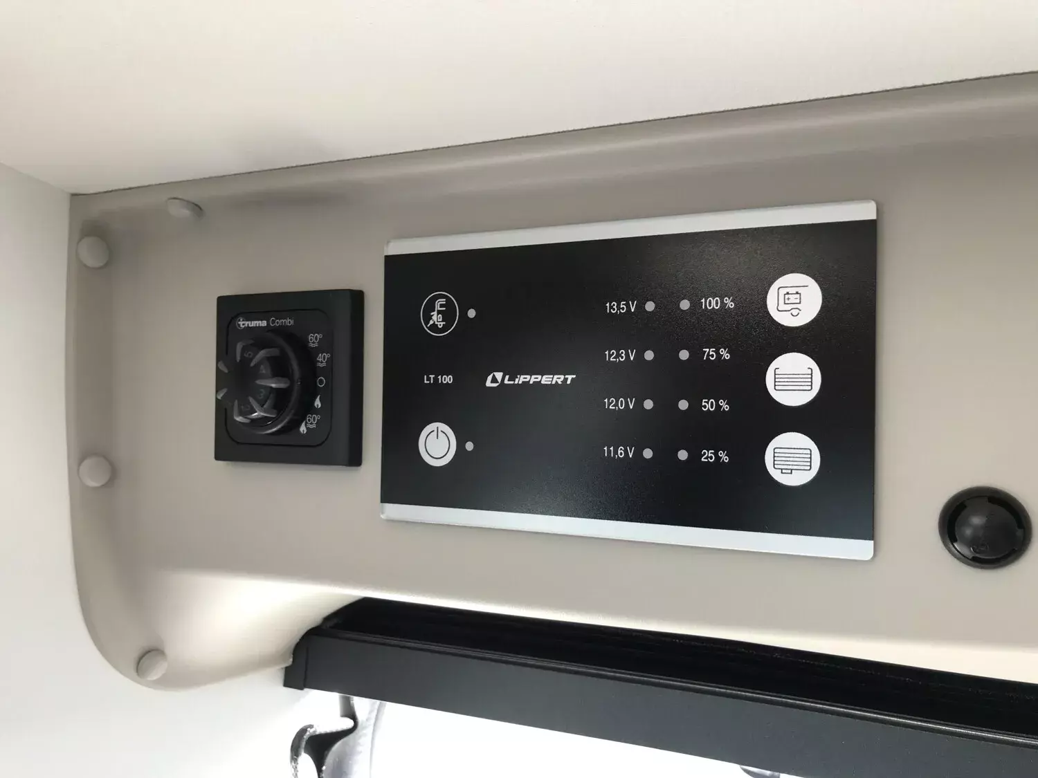 - Basic Paket (Panoramadachhaube 70 x 50 cm, Duschausstattung, Fenster im Bad, Kleiderstange in der Nasszelle, Breite Einstiegsstufe, Drehplatte für Tischerweiterung an der Sitzgruppe)