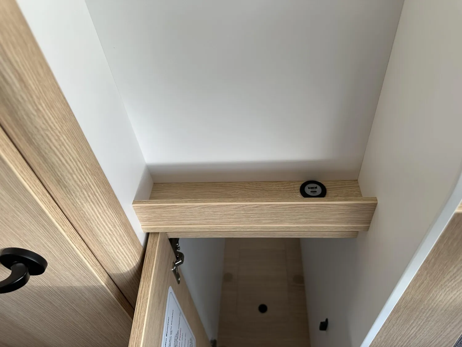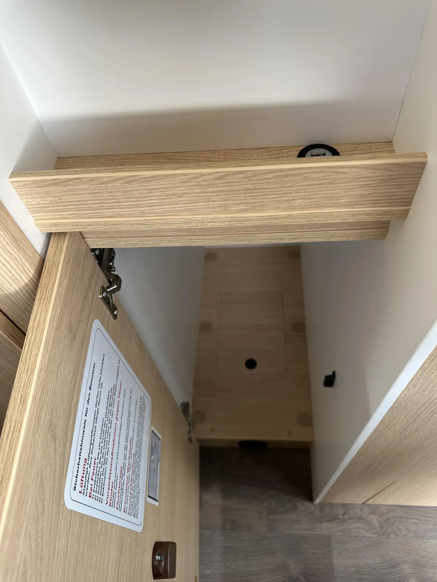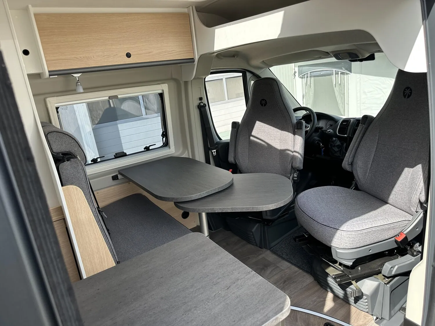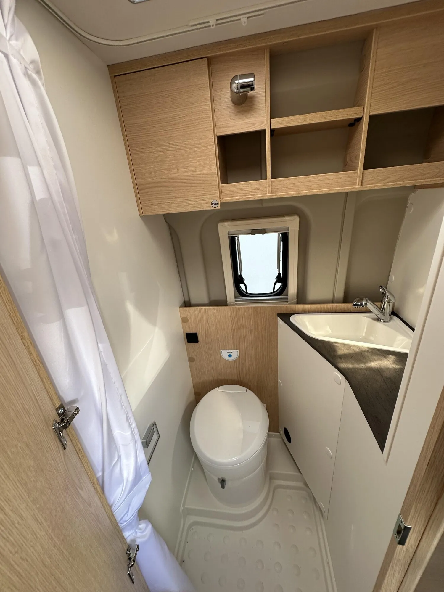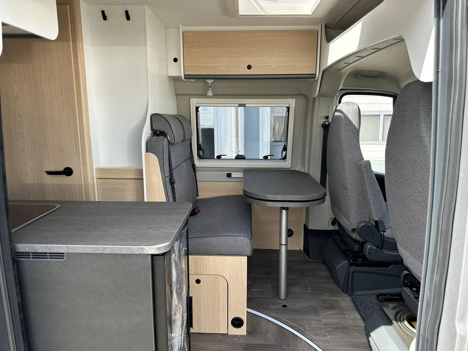 - Basic Paket (Panoramadachhaube 70 x 50 cm, Duschausstattung, Fenster im Bad, Kleiderstange in der Nasszelle, Breite Einstiegsstufe, Drehplatte für Tischerweiterung an der Sitzgruppe)