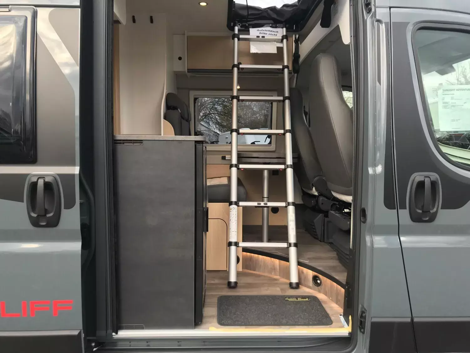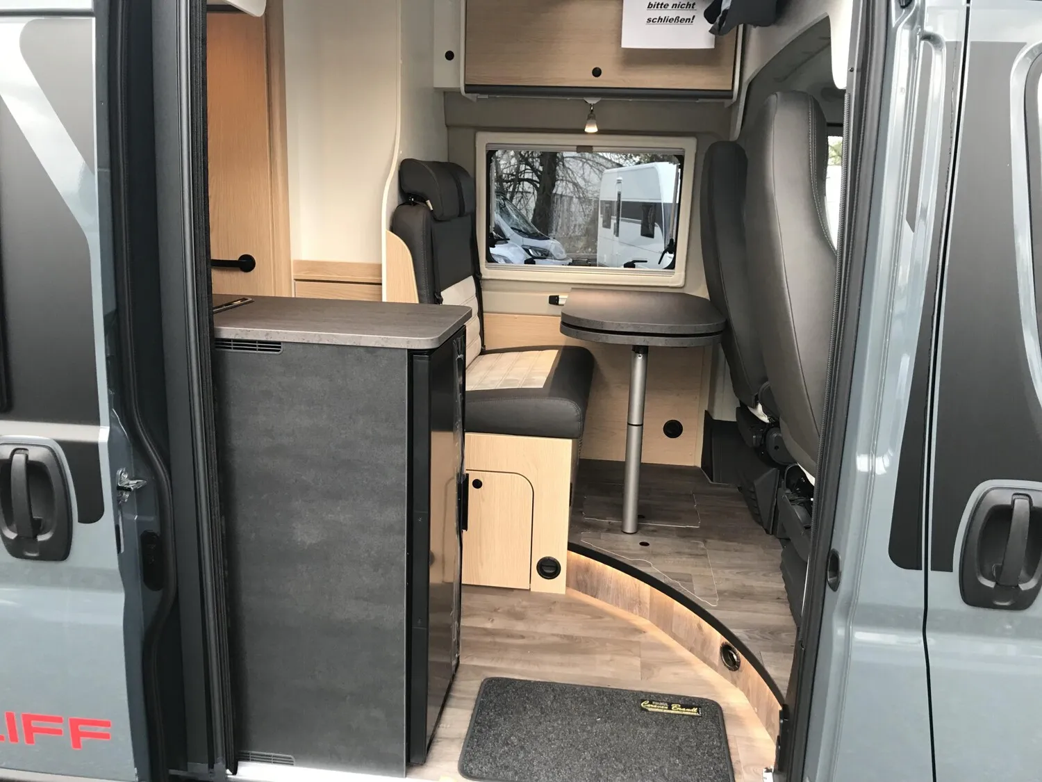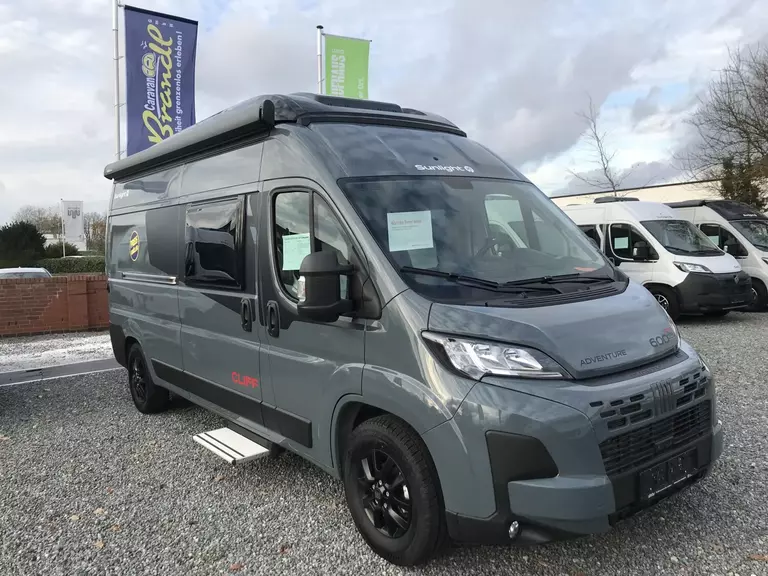- Adventure Ausstattung 600 (Fiat Ducato 3.500 kg | 2.2 | 103 kW | 140 PS Euro 6 | 6-Gang-Schaltgetriebe, Fiat Weiß, Adventure Beklebung, Wohnwelt Adventure, Markise (schwarz), Panoramadachhaube 70 x 50 cm, Duschausstattung, Fenster im Bad, Kleiderstange in der Nasszelle, Breite Einstiegsstufe, Drehplatte für Tischerweiterung an der Sitzgruppe, Stoßfänger lackiert, Skid Plate Schwarz, Nebelscheinwerfer, Lenkrad & Schaltknauf in Lederausführung, Luftauslässe mit Applikationen Silber (Techno-Trim), 16" Alufelgen Bi-Color)