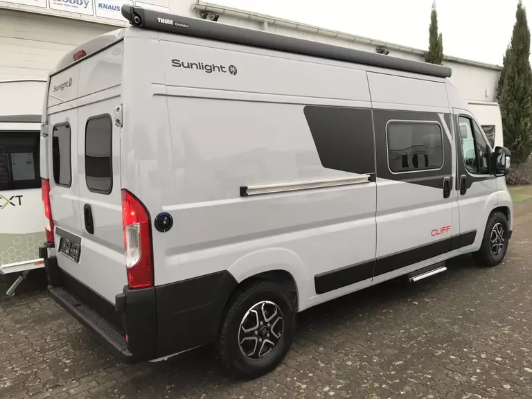 - Adventure Ausstattung 602 (Fiat Ducato 3.500 kg | 2.2 | 103 kW | 140 PS Euro 6 | 6-Gang-Schaltgetriebe, Fiat Weiß, Adventure Beklebung, Wohnwelt Adventure, Markise (schwarz), Panoramadachhaube 70 x 50 cm, Duschausstattung, Fenster im Bad, Kleiderstange in der Nasszelle, Breite Einstiegsstufe, Drehplatte für Tischerweiterung an der Sitzgruppe, Stoßfänger lackiert, Skid Plate Schwarz, Nebelscheinwerfer, Lenkrad & Schaltknauf in Lederausführung, Luftauslässe mit Applikationen Silber (Techno-Trim), 16" Alufelgen Bi-Color)