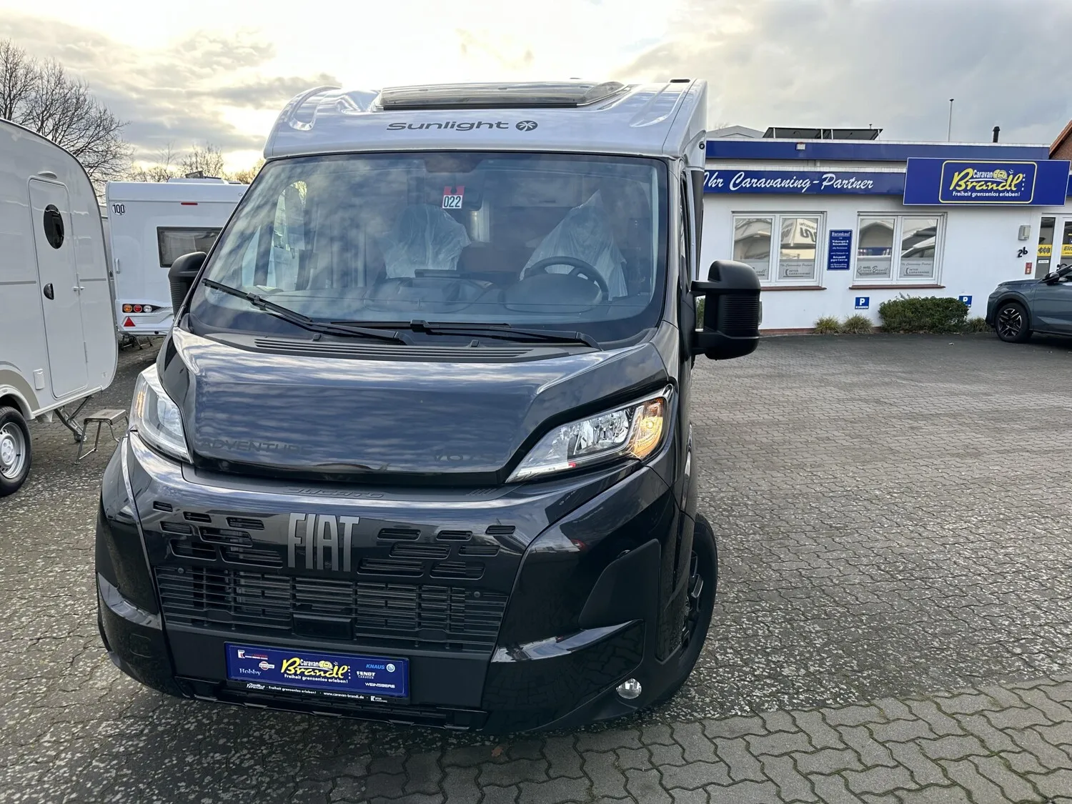 - Adventure Ausstattung 67S (Fiat Ducato 3.500 kg | 2.2 | 103 kW | 140 PS Euro 6 | 6-Gang-Schaltgetriebe, Fiat Weiß, Adventure Beklebung, Wohnwelt Adventure, Fenster in Fronthaube, 2. Außenstauraumklappe (Größe modellabhängig), Bettenumbau Einzelbett zu Doppelbett, Paket One Black (Markise, Fahrradträger 3-fach), Bridge Light, Fliegengittertür (einteilig), Spiegel mit Garderobenhaken, Panoramadachhaube 70 x 50 cm, Klarglasdachhaube 40 x 40 cm, Stoßfänger lackiert, Skid Plate Schwarz, Nebelscheinwerfer, Lenkrad & Schaltknauf in Lederausführung, Luftauslässe mit Applikationen Silber (Techno-Trim), 16" Alufelgen Bi-Color)