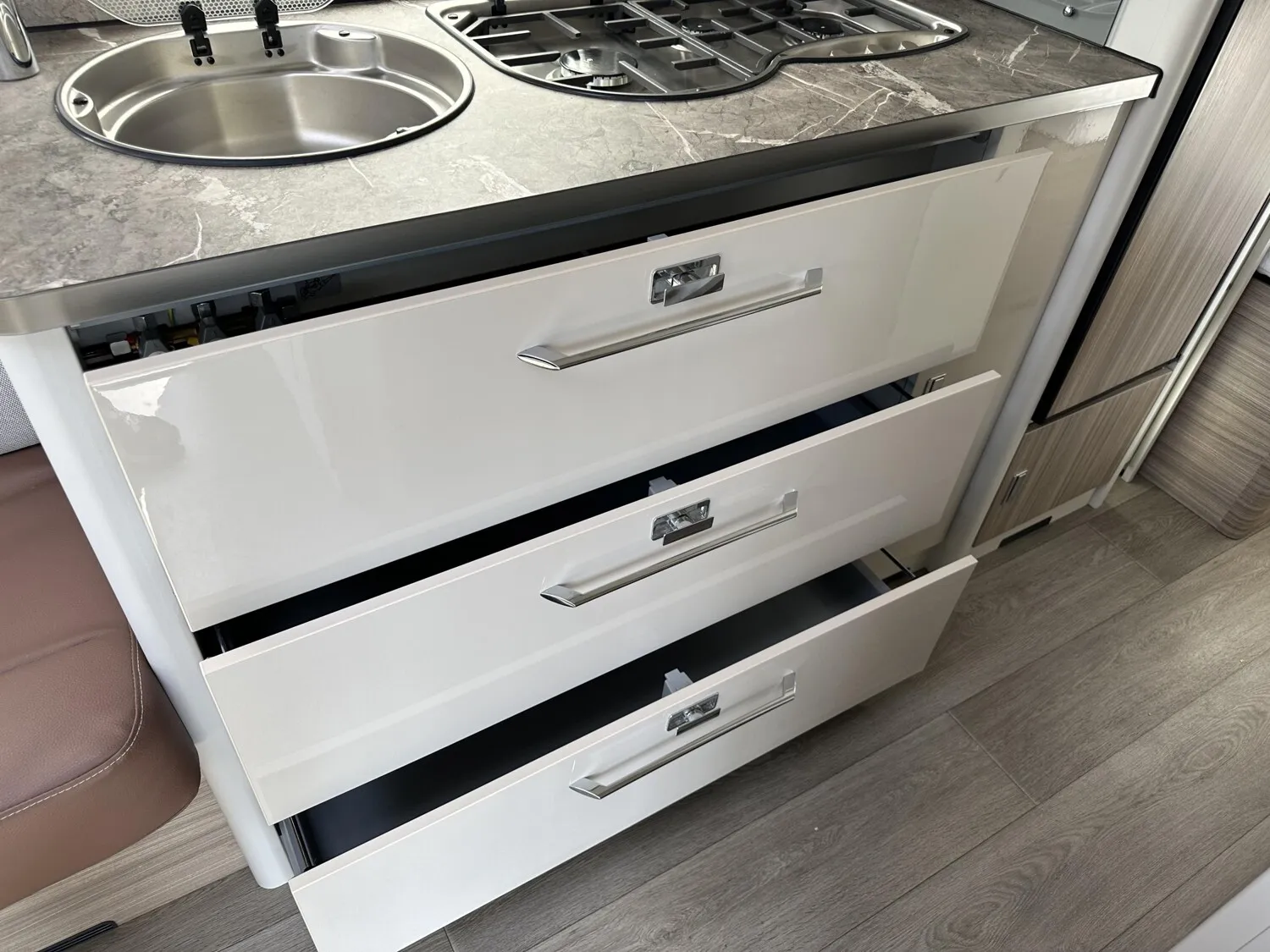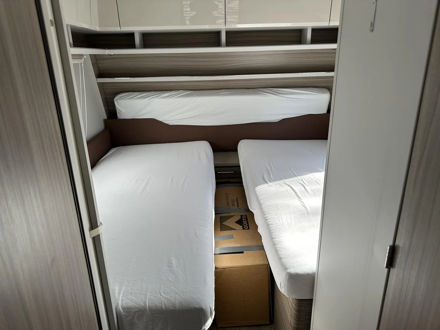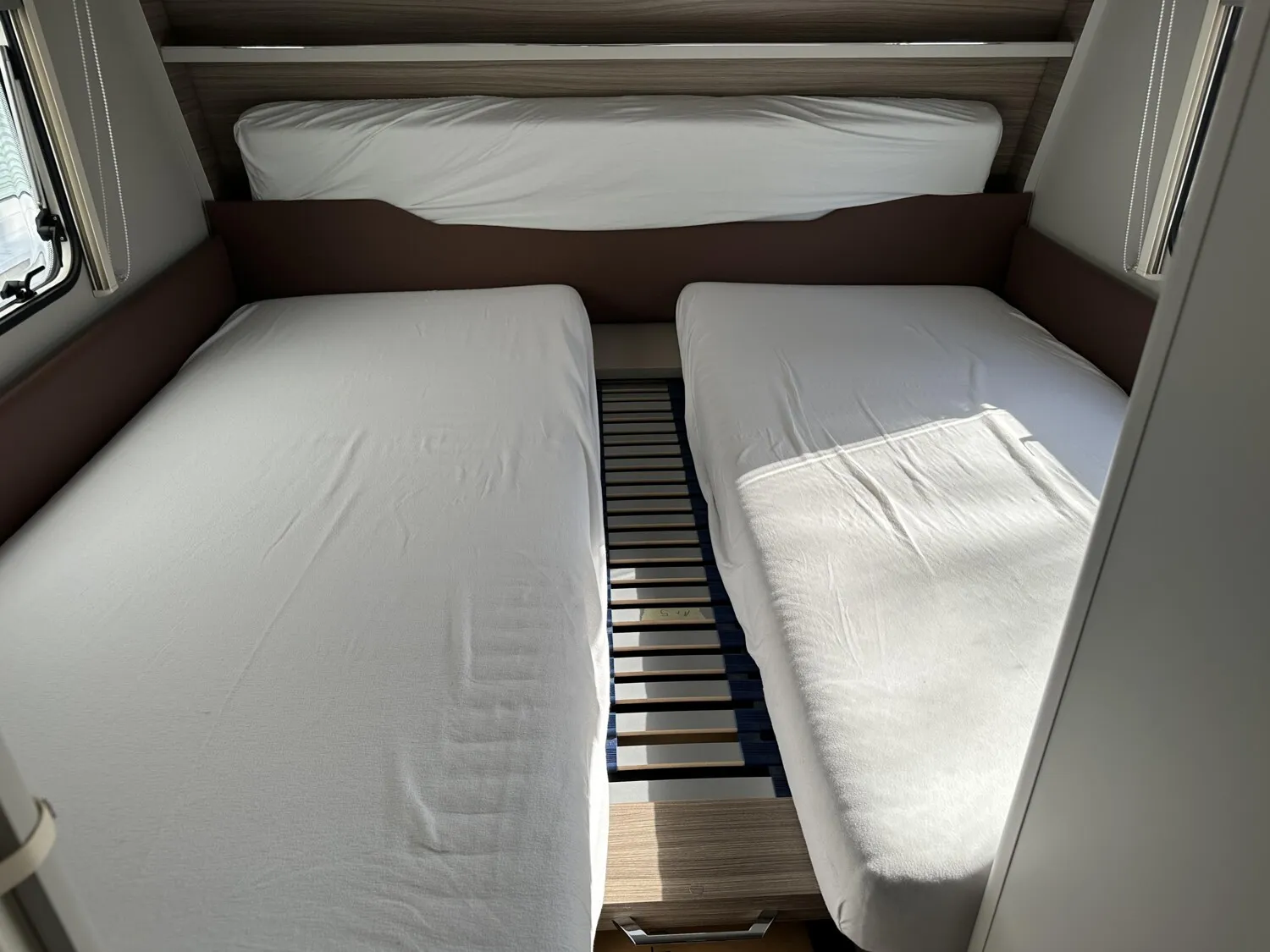 Mit großzügiger Sitzgruppe im Heck und Einzelbetten im Bug, Kocher und Spüle kaum genutzt.
