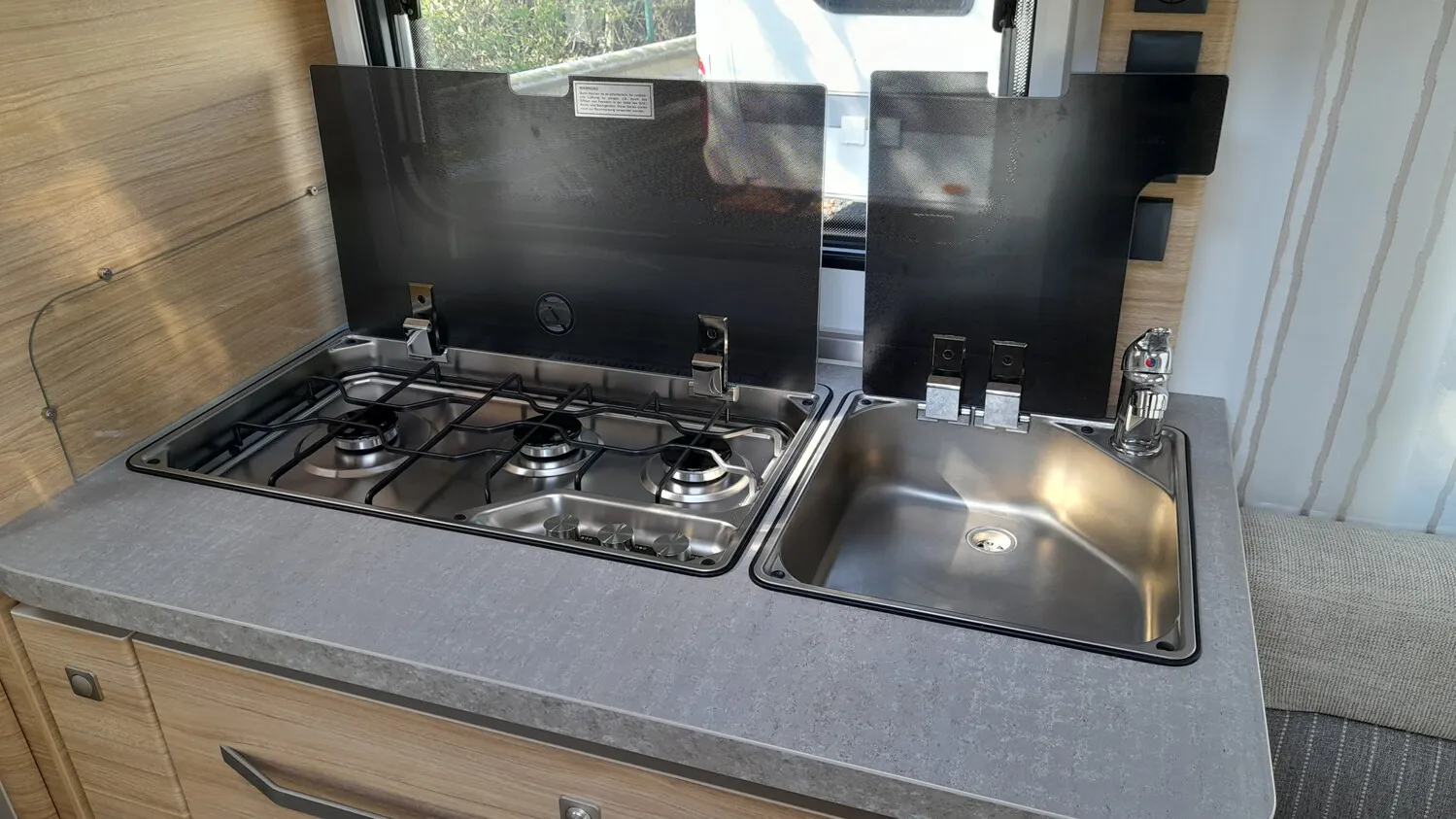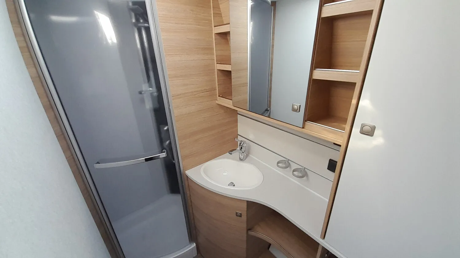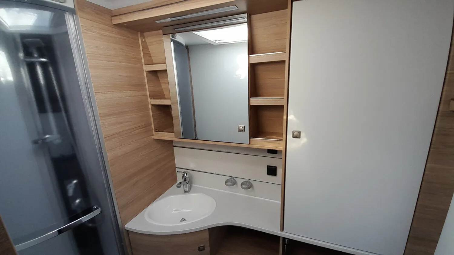 - Shower-Paket VIII (City-Anschluss mit 45 l Frischwassertank, Elektrobetrieb für Truma C6)