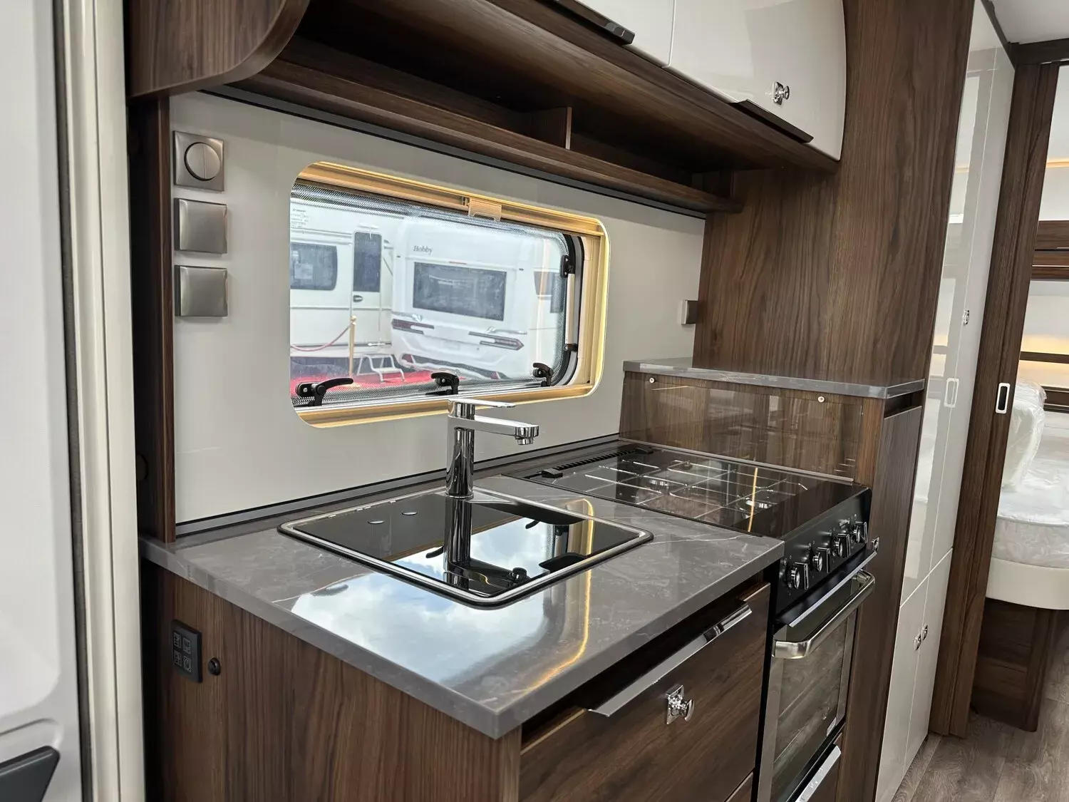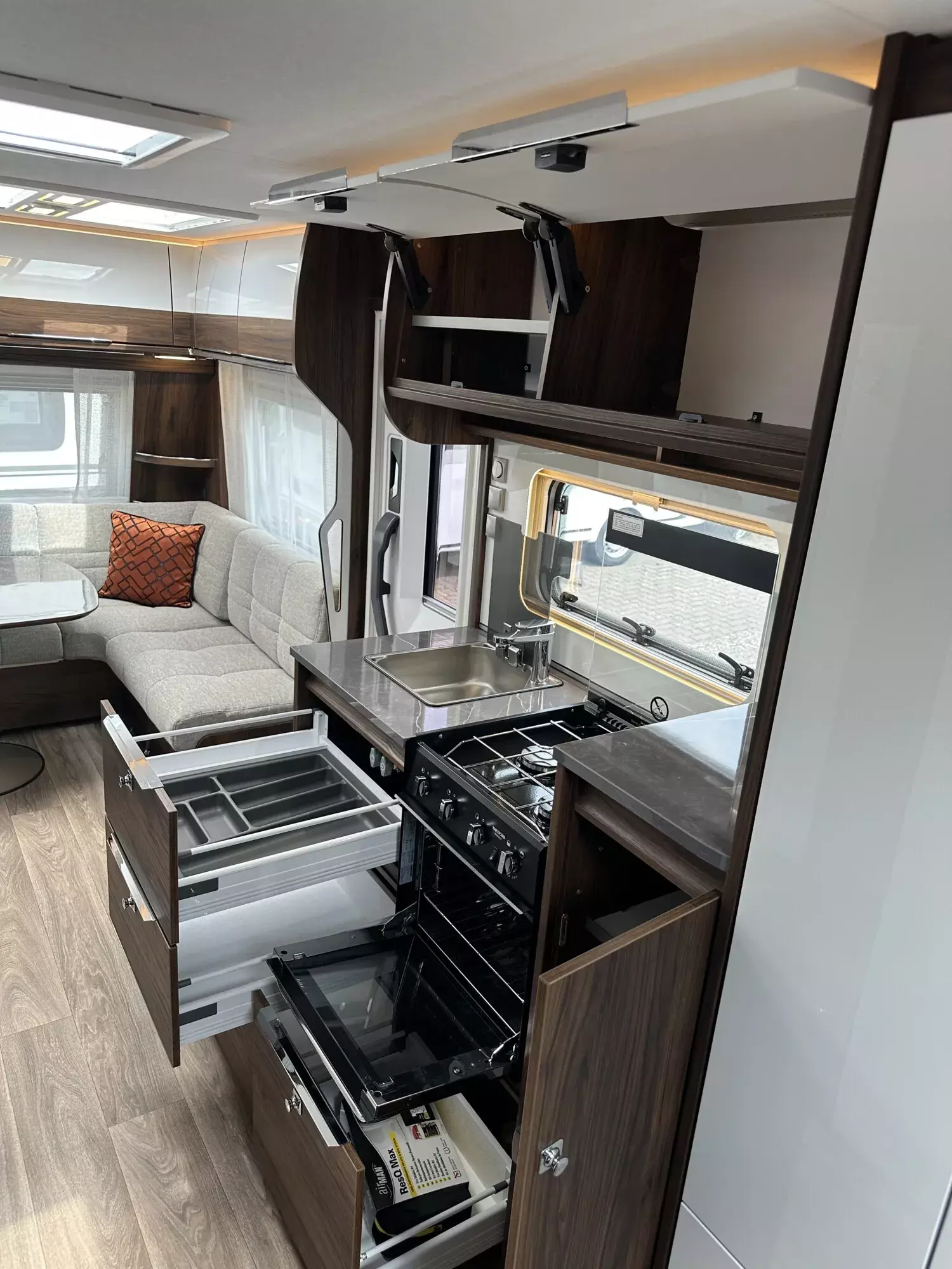 Die Sitzgruppen im Diamant haben durch eine exklusive Federkernpolsterung und höhenverstellbare Kopfstützen einen außergewöhnlichen Sitzkomfort. Die Panoramadachhaube Skylight durchflutet den Wohnbereich mit hellem Tageslicht und nachts sorgt die integrierte LED-Beleuchtung für ausreichend Helligkeit.