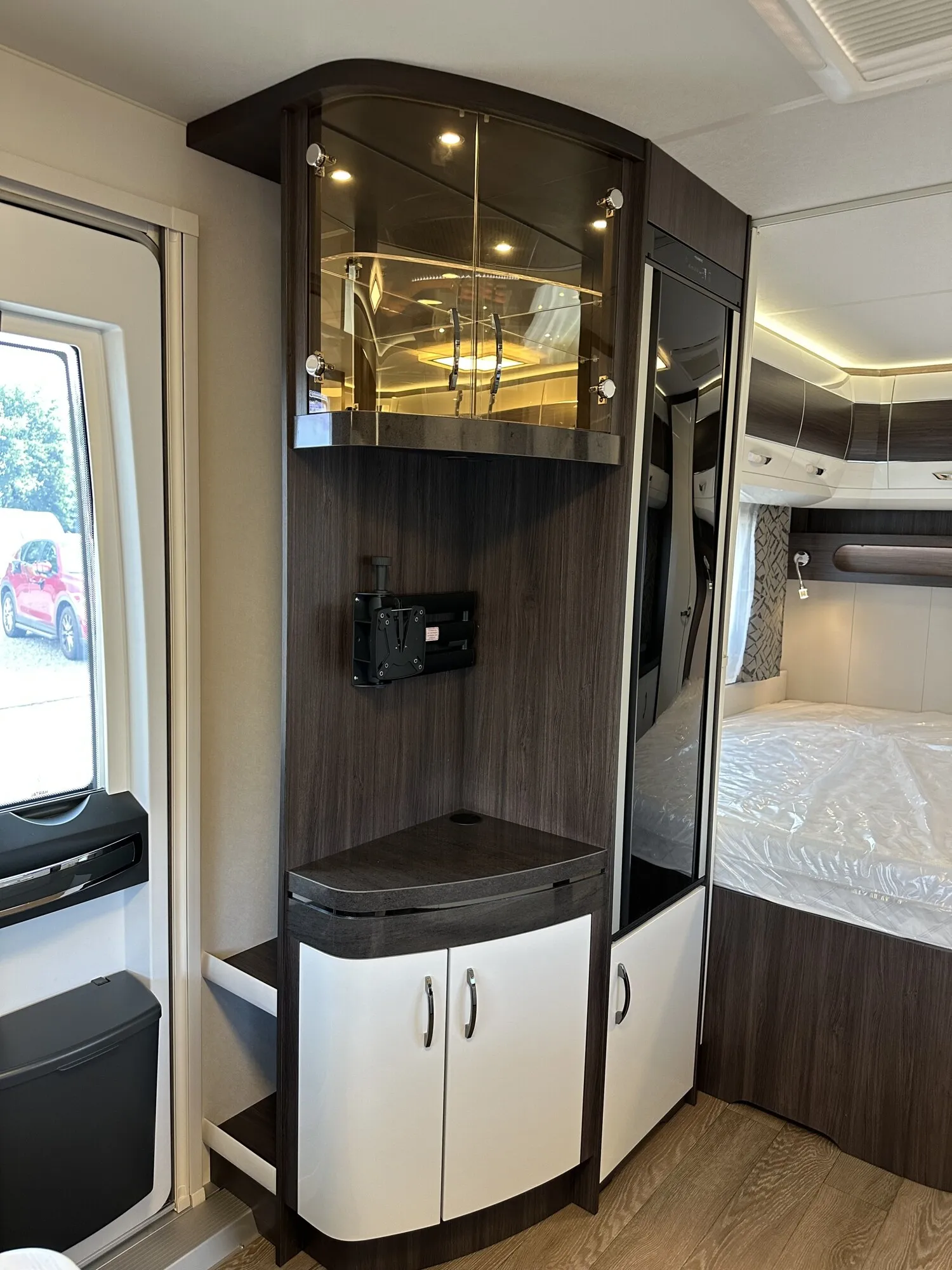 - Fernsehgelenkhalter inkl. benötigter Anschlüsse, ohne Videokabel (Cinch)