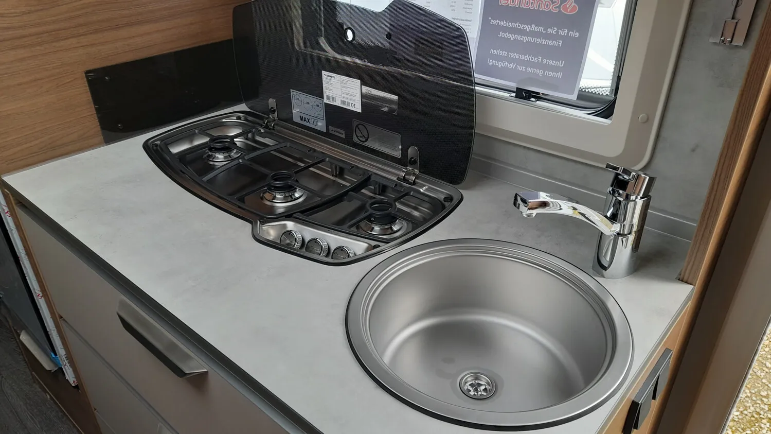 - Plus-Paket (Seifen- und Spülmittelspender, Dachhaube (Hebe-Kipp) 96 x 65 cm, mit Insektenschutz und Verdunklung (Bug), Wasserfiltersystem "bluuwater", MediKit Gutschein, AL-KO AAA Premium Brake, Stützrad mit integrierter Stützlastanzeige, AL-KO Schwerlastkurbelstützen, Insektenschutztür)
