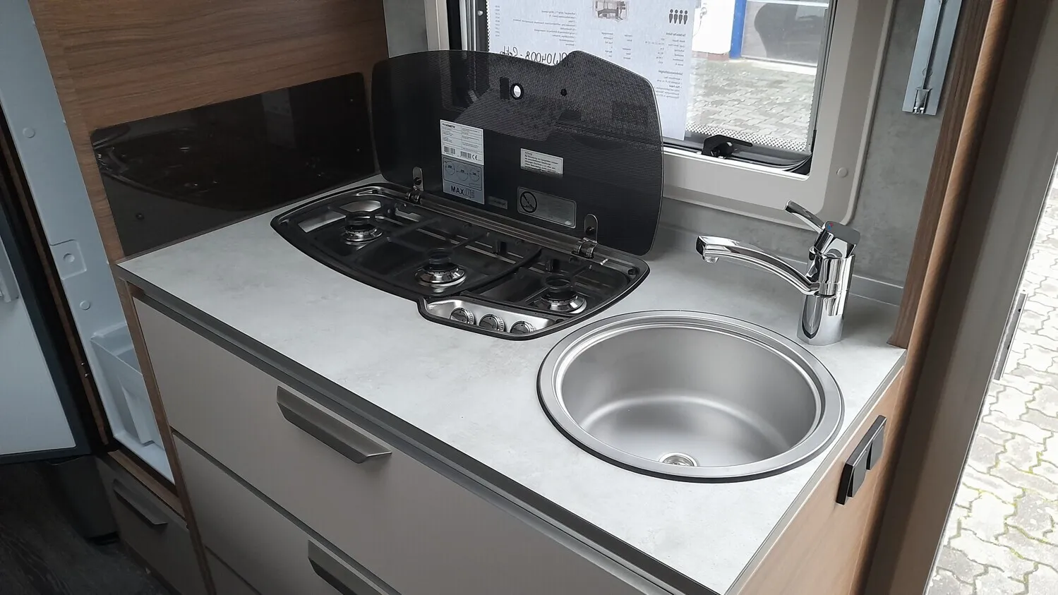 - Plus-Paket (Seifen- und Spülmittelspender, Dachhaube (Hebe-Kipp) 96 x 65 cm, mit Insektenschutz und Verdunklung (Bug), Wasserfiltersystem "bluuwater", MediKit Gutschein, AL-KO AAA Premium Brake, Stützrad mit integrierter Stützlastanzeige, AL-KO Schwerlastkurbelstützen, Insektenschutztür)
