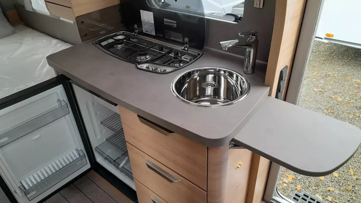 - Gas Paket (Gasschlauch Ausführung D/AT/ES/FI/BE/IT/NL/DK, Gasanlage 30 mbar, Kühlschrank 142 Liter, Gasregler Ausführung D/AT/ES/FI/BE/IT/NL/DK, 3-Flammen-Kocher mit elektrischer Zündung, Glasabdeckung und Spülbecken in Edelstahl, Heizung TRUMA VarioHeat, Gaskasten mit Außenklappe)