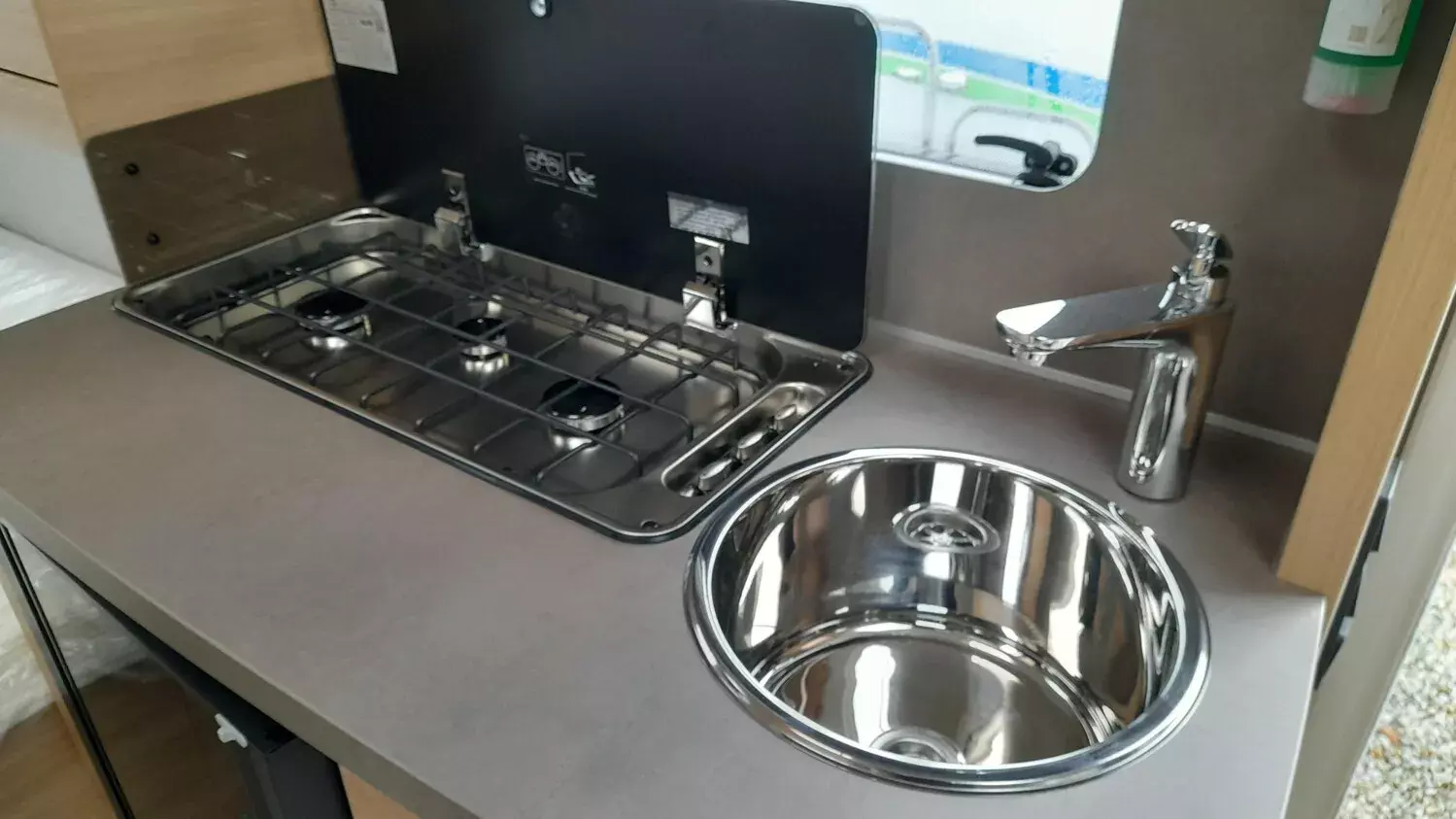 - Gas Paket (Gasschlauch Ausführung D/AT/ES/FI/BE/IT/NL/DK, Gasanlage 30 mbar, Kühlschrank 142 Liter, Gasregler Ausführung D/AT/ES/FI/BE/IT/NL/DK, 3-Flammen-Kocher mit elektrischer Zündung, Glasabdeckung und Spülbecken in Edelstahl, Heizung TRUMA VarioHeat, Gaskasten mit Außenklappe)