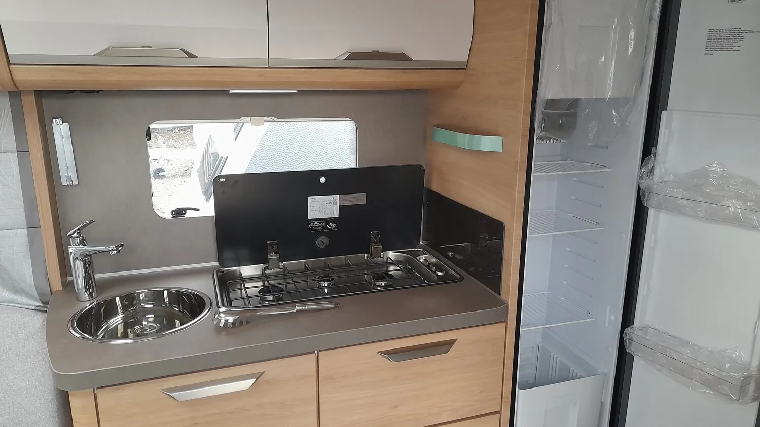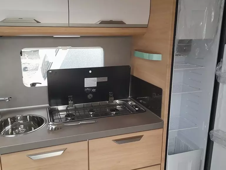 - Gas Paket (Gasschlauch Ausführung D/AT/ES/FI/BE/IT/NL/DK, Gasanlage 30 mbar, Kühlschrank 142 Liter, Gasregler Ausführung D/AT/ES/FI/BE/IT/NL/DK, 3-Flammen-Kocher mit elektrischer Zündung, Glasabdeckung und Spülbecken in Edelstahl, Heizung TRUMA VarioHeat, Gaskasten mit Außenklappe)