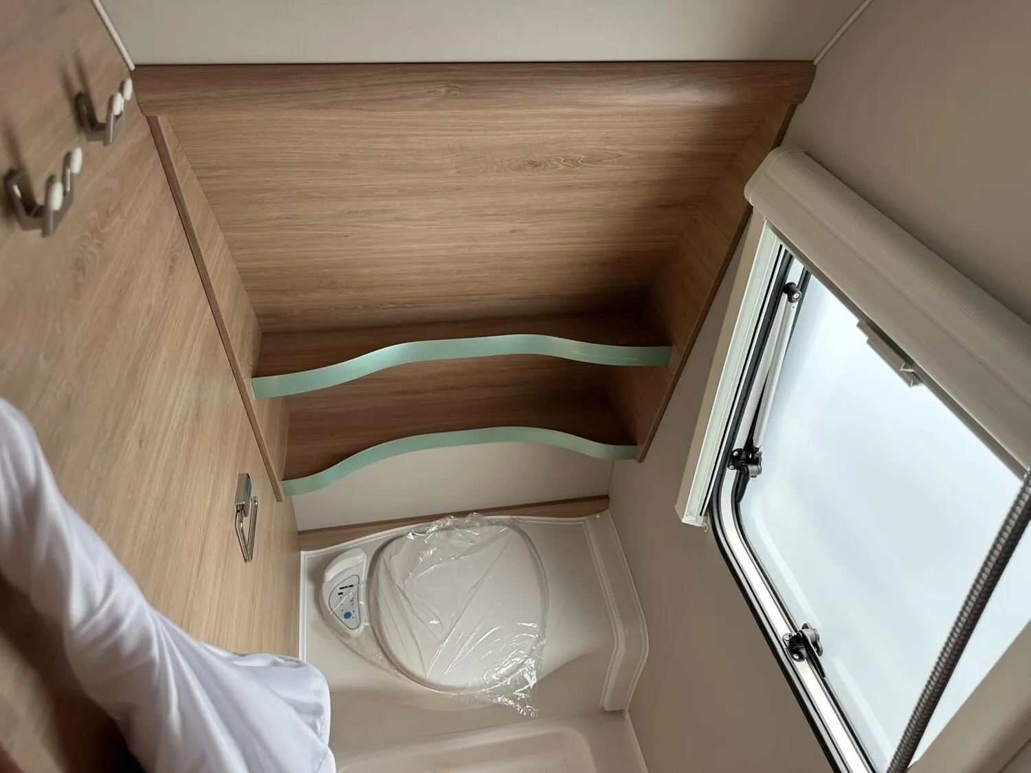 - Duschausbau Standardwaschraum: Brausekopf ausziehbar, Halter für Brausekopf und Duschvorhang