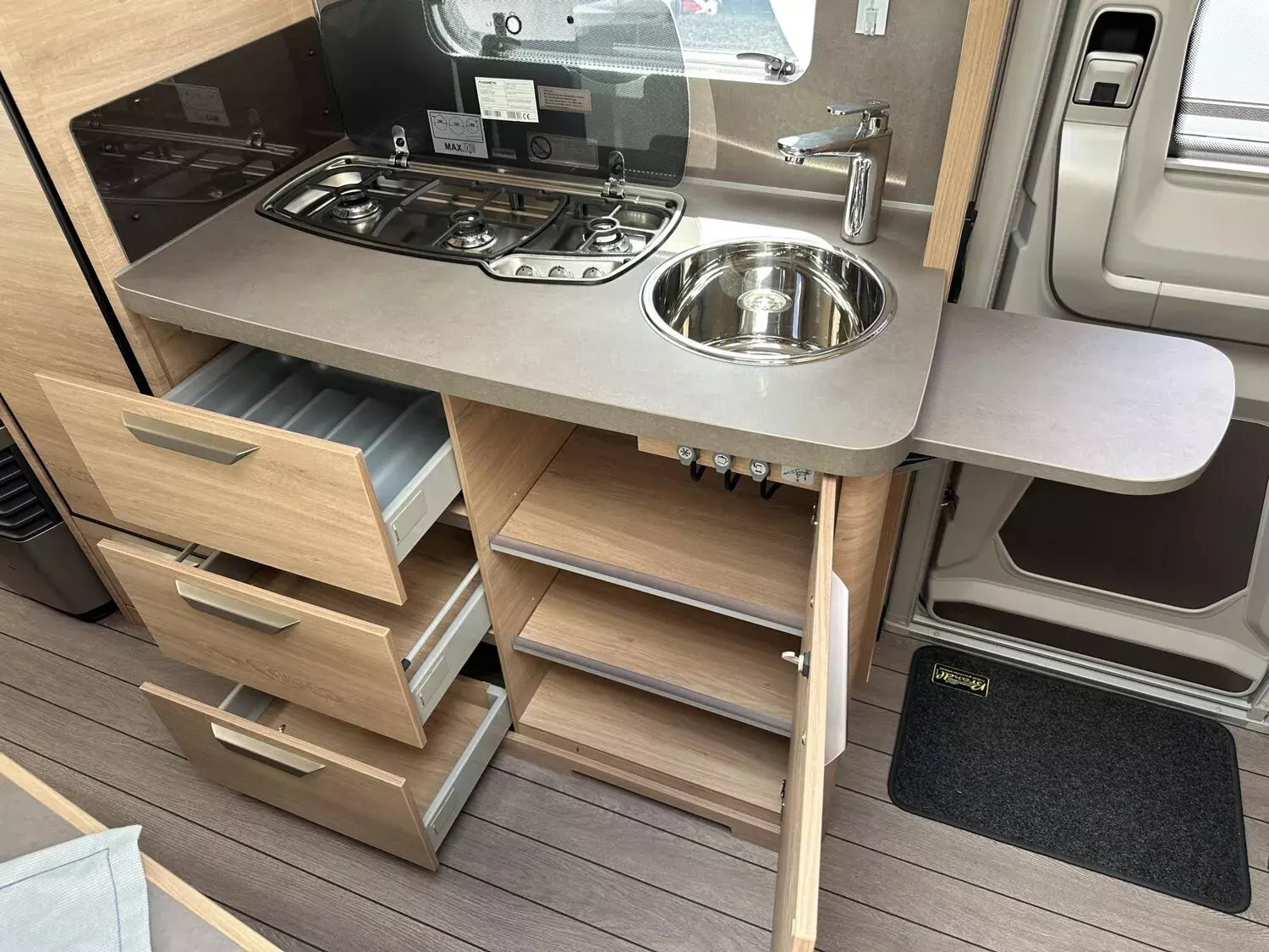 - Aufklappbare Arbeitsplattenverlängerung an der Küche