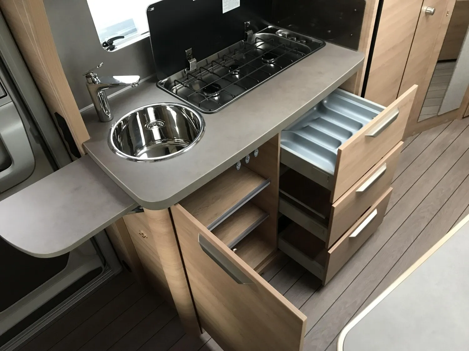 - Aufklappbare Arbeitsplattenverlängerung an der Küche