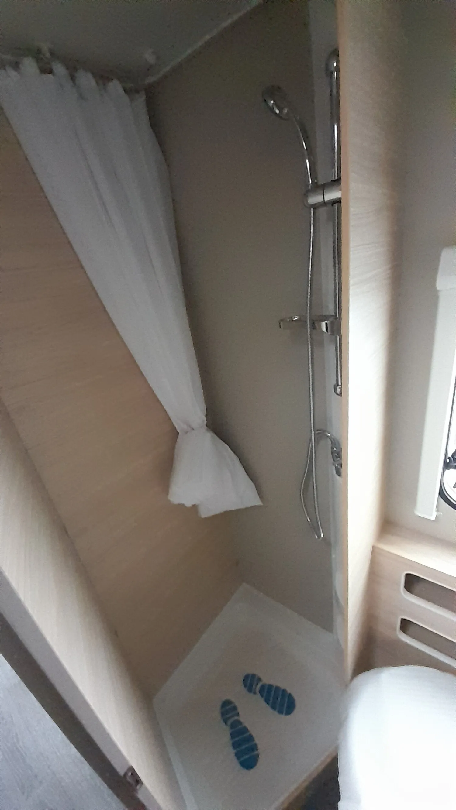 - Duschausbau-Paket (TRUMA Therme mit Anschluss für Küche und T-Raum (nur 230 V Betrieb), Wasserfiltersystem "bluuwater", Duschwanne, Abwassertank 25 Liter, rollbar, Duschausbau Waschraum: Brausearmatur mit Halter und Duschvorhang)