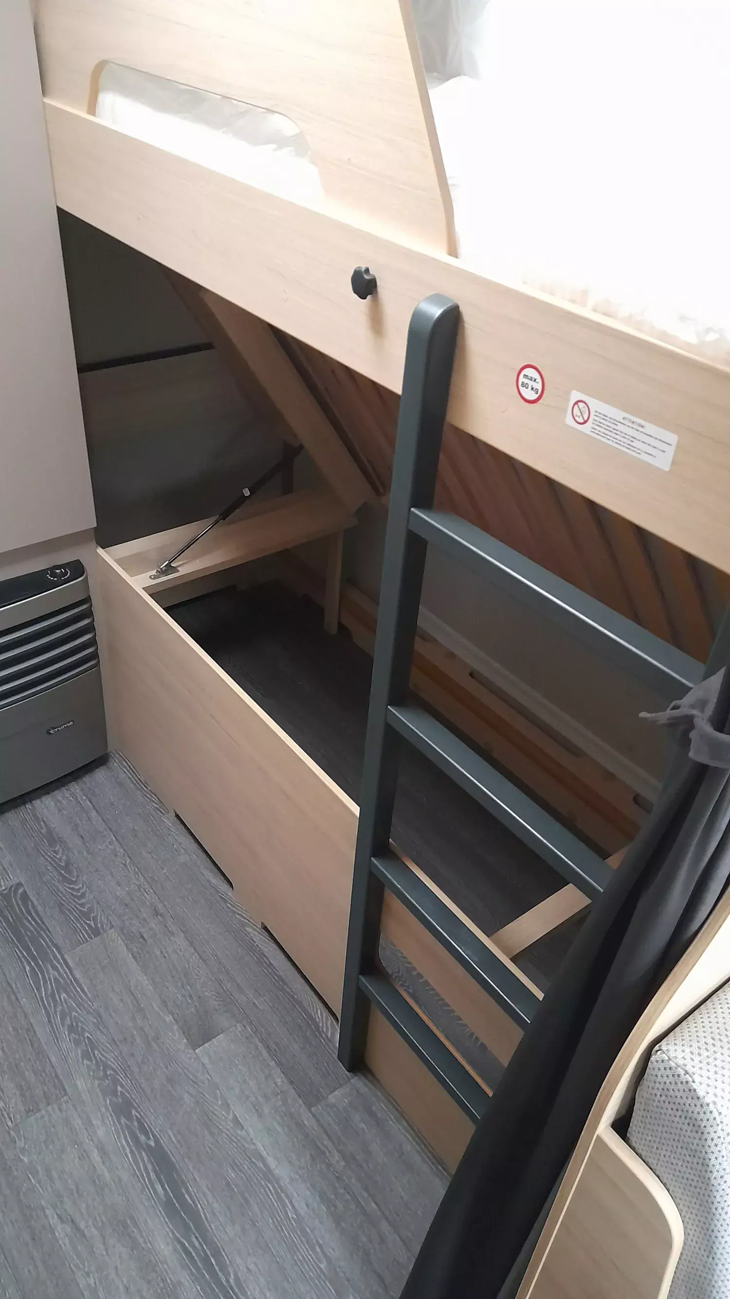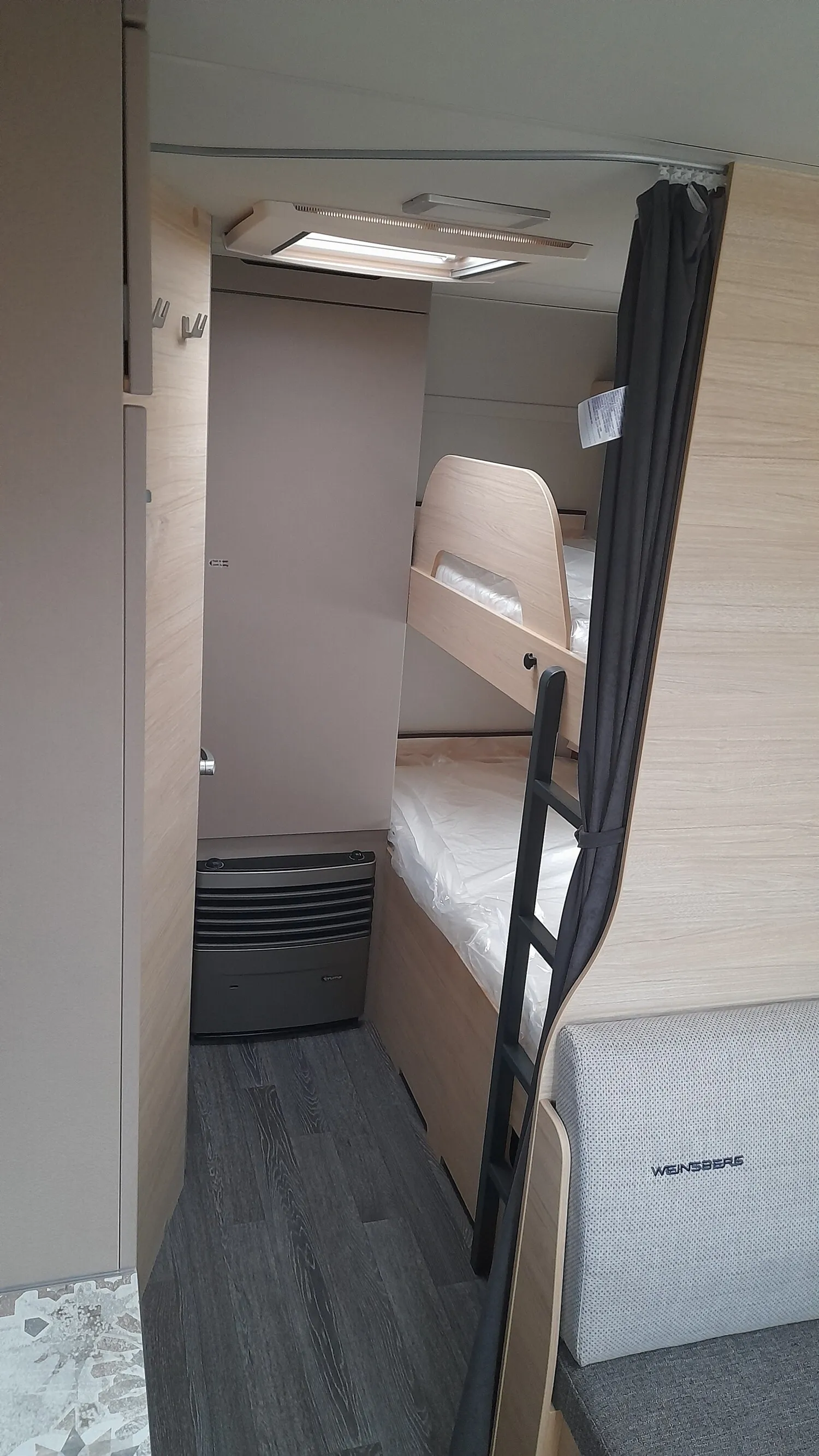 Leicht und kompakt inklusive separater Dusche, mit Etagenbetten für Kinder und Doppelbett für Eltern ist er der ideale Reisebegleiter für die Familie.