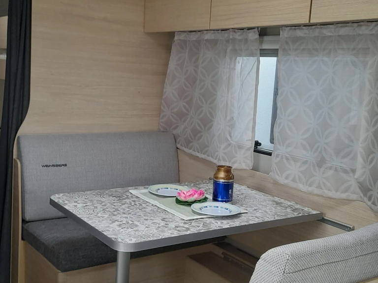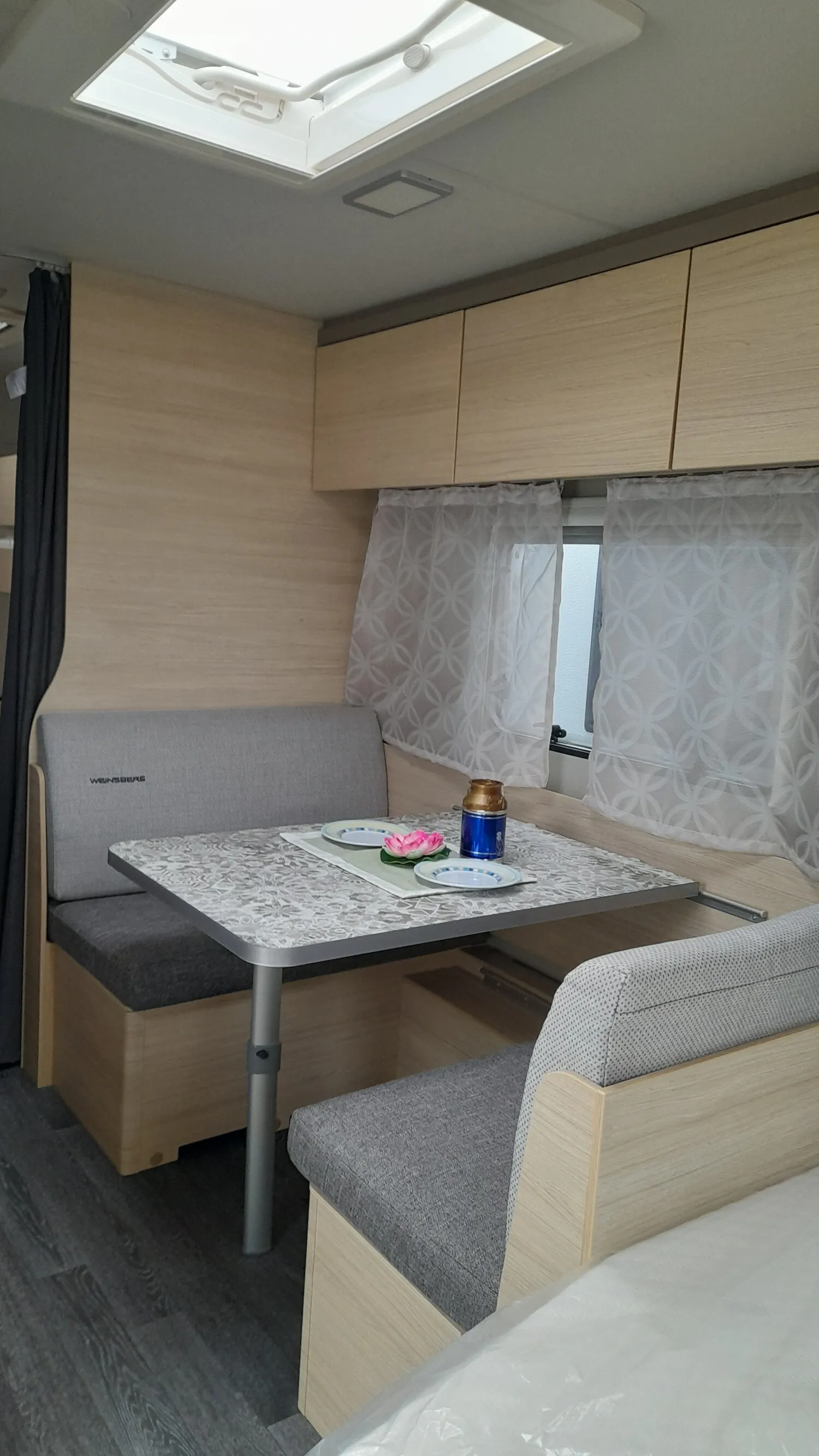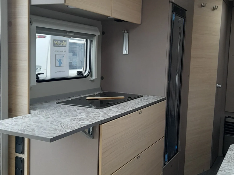 Leicht und kompakt inklusive separater Dusche, mit Etagenbetten für Kinder und Doppelbett für Eltern ist er der ideale Reisebegleiter für die Familie.