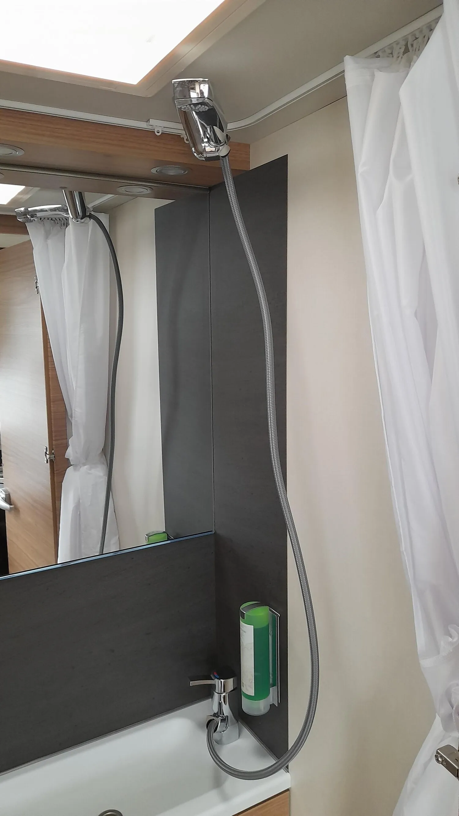 - Advanced-Paket (TRUMA Therme mit Anschluss für Küche und T-Raum (nur 230 V Betrieb), Dachhaube (Hebe-Kipp) 70 x 50 cm, mit Insektenschutz und Verdunklung (Mitte), Abwassertank 25 Liter, rollbar, Duschausbau Waschraum: Brausearmatur mit Halter und Duschvorhang, Insektenschutztür)