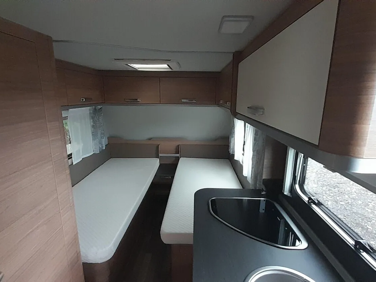 - Smart-Paket (Seifen- und Spülmittelspender, Wasserfiltersystem "bluuwater", Frischwassertank 45 Liter, Festeinbau, MediKit Gutschein, Schwerlastkurbelstützen, Stabilisator-Sicherheits-Kupplung, Umluftanlage 12 V, Kombi-Rollos an den Fenstern, inkl. Verdunklung und Insektenschutz)