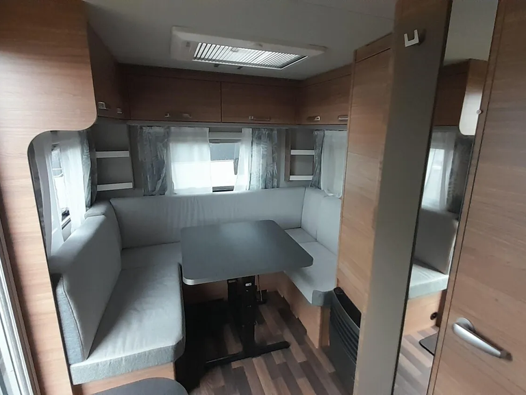Junger gebrauchter Weinsberg CaraOne mit gemütlicher Rundsitzgruppe im Heck, Einzelbetten im Bug
