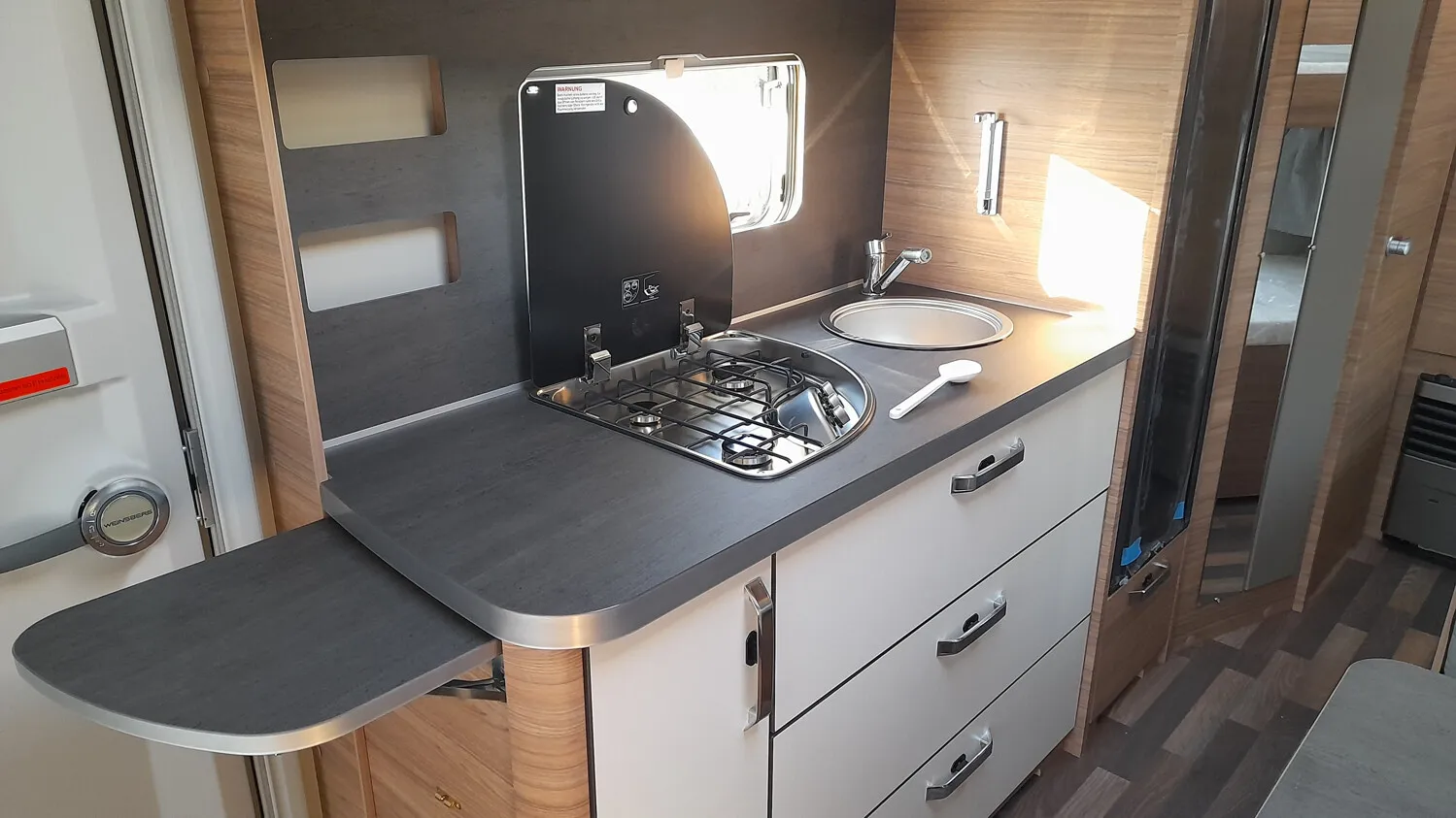 - Aufklappbare Arbeitsplattenverlängerung an der Küche
